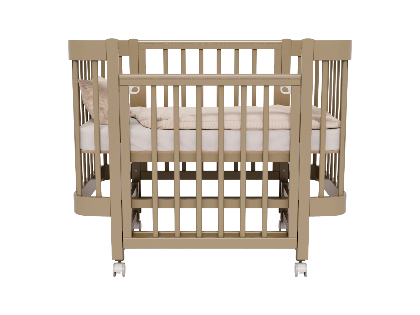 - Колеса - легкое перемещение кроватки в комнатном пространстве. Колеса используются на кроватке с маятником и без маятника.